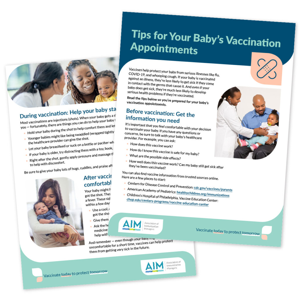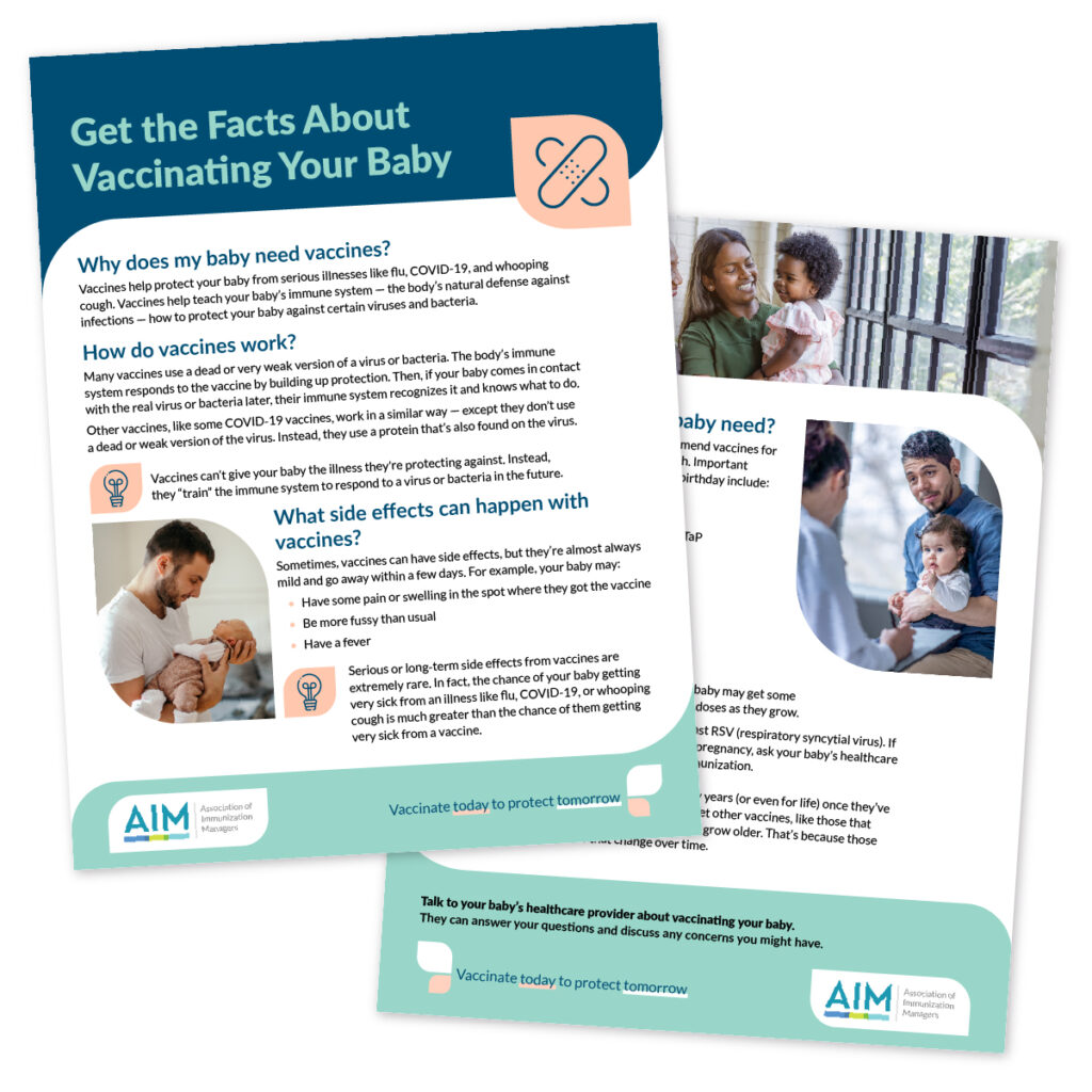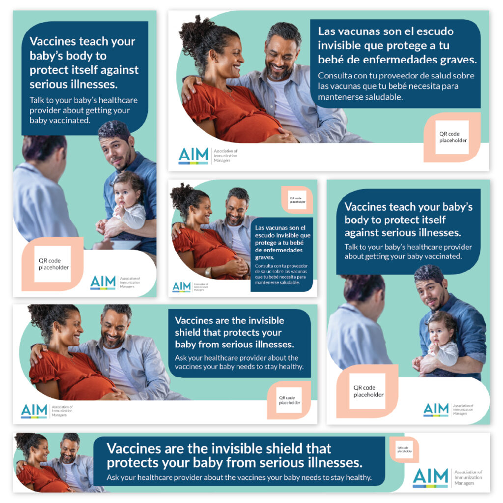 AIM asked CommunicateHealth to help create a media library of free co-brandable assets encouraging new and expecting parents to vaccinate their babies. For this project: