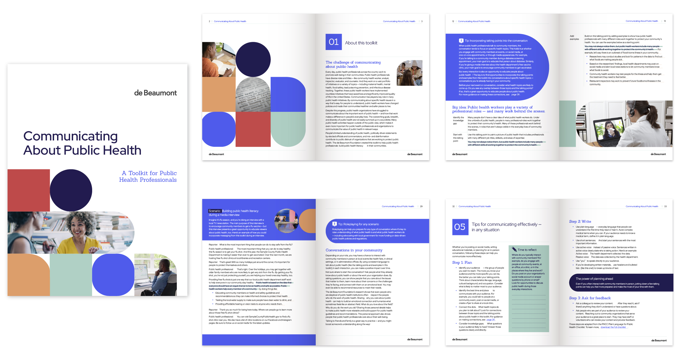 • For this project, I worked within deBeaumont’s established branding guidelines to create a 38-page toolkit and accompanying worksheets that would fit into their existing suite of materials.